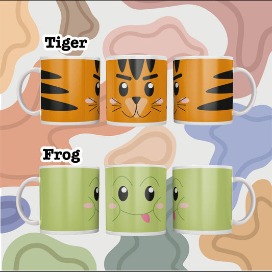 Animal Mugs - Cartoon Animal - Hand Made - Sublimated - Highland cow - Duck - Penguin - Frog - Cat - Tiger - Panda - Custom