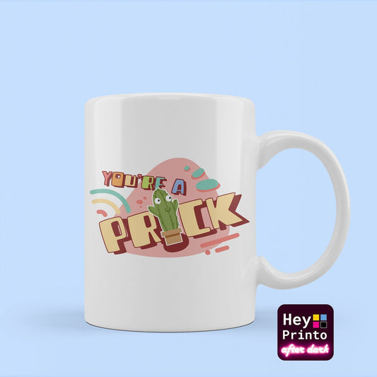 Cactus mug, you're a prick mug, funny coffee cup, offensive mug adult homour, funny novelty gift birthday anniversary
