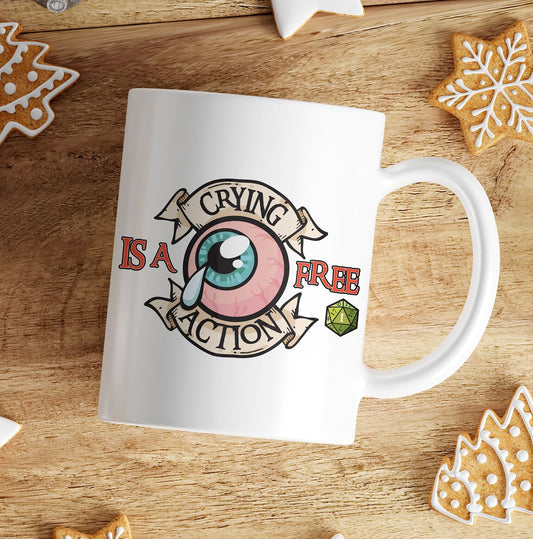 Dungeons and Dragons | DnD | Crying is a free action | Mug | Dungeons and Dragons Inspired Coffee Mug