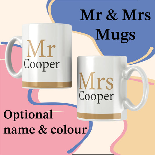 Mr & Mrs mug set - Couples - Married - Surname - Personalised - Wedding gift - Anniversary Gift - Mug Set - Personalised Wedding Gift